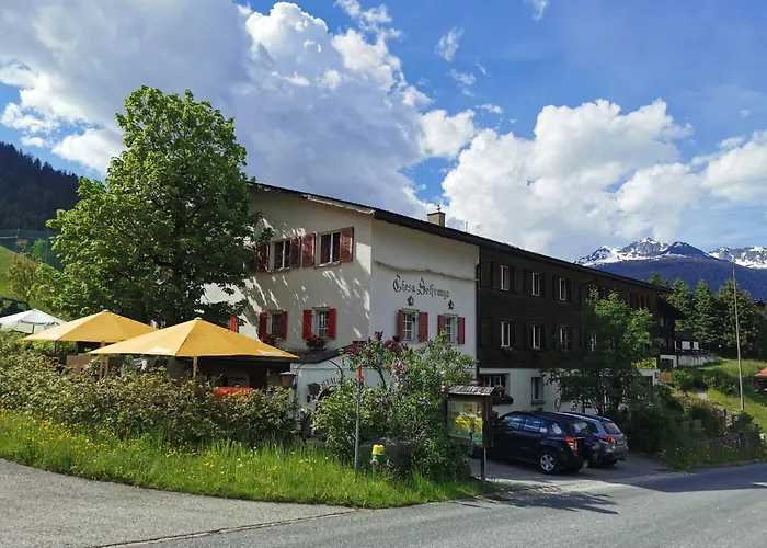 Nabízející sluneční terasu, místo na piknik a golfové hřiště, Hostel Chesa Selfranga je 3 km od Parsennhuttenbahn.